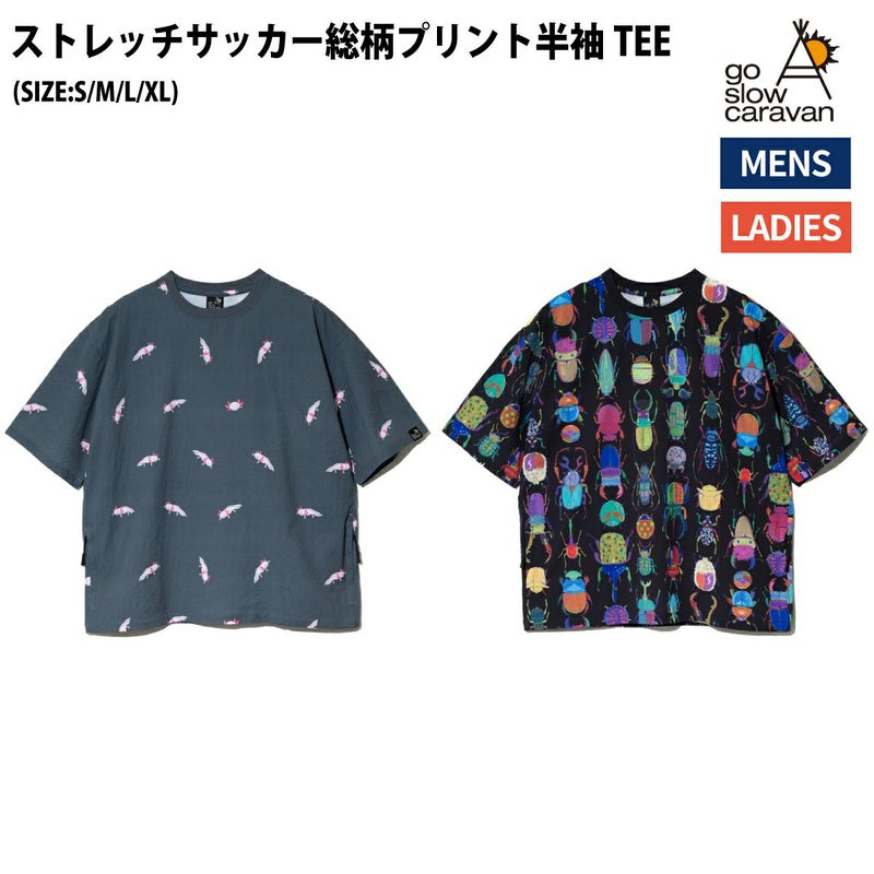 【30%OFF】 ゴースローキャラバン go slow caravan ストレッチサッカー総柄プリント半袖TEE シアサッカー生地 カジュアル 半袖 シャツ 346124 011 012 アウトレット セール