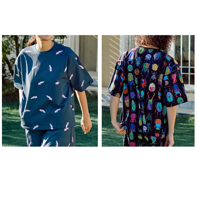 身幅を広めにとり、着丈はやや短め。ゆったりとしたシルエットで、軽量でさらっとした肌触りなので室内着、夏本番の外遊びともに快適に着ていただけます。