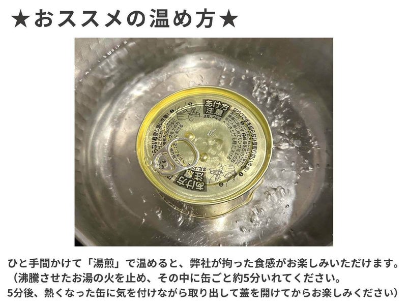 5分後、熱くなった缶に気を付けながら取り出して蓋を開けてからお楽しみください)