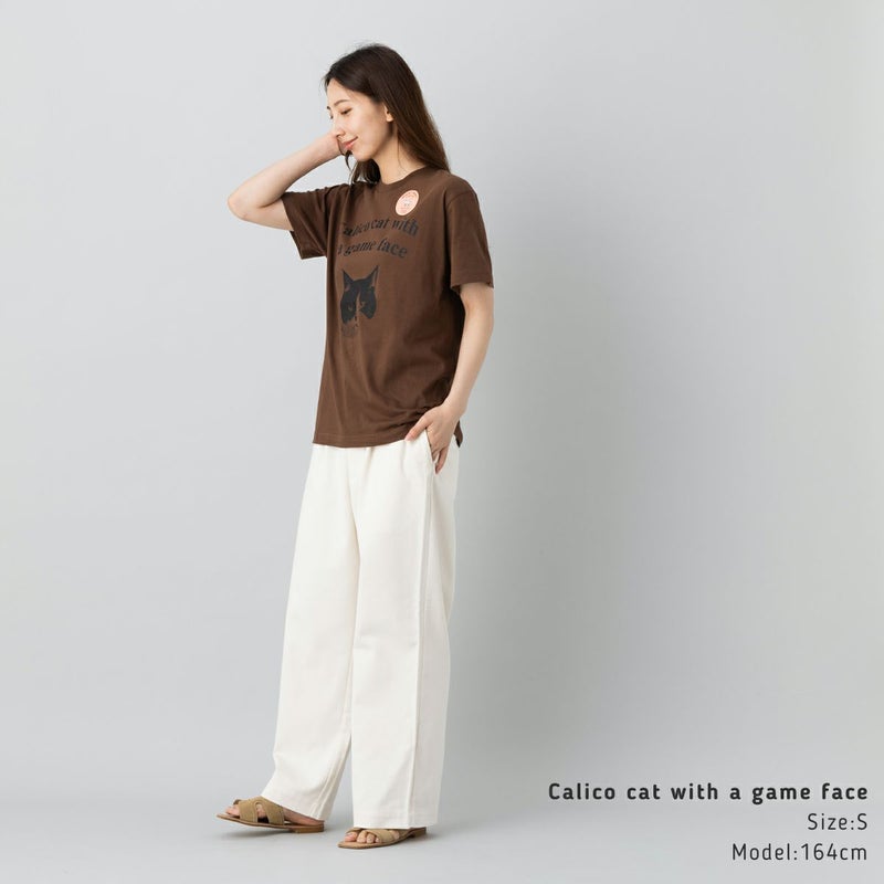 インパクトのあるフロントの猫のプリントが1枚で様になるアイテム。