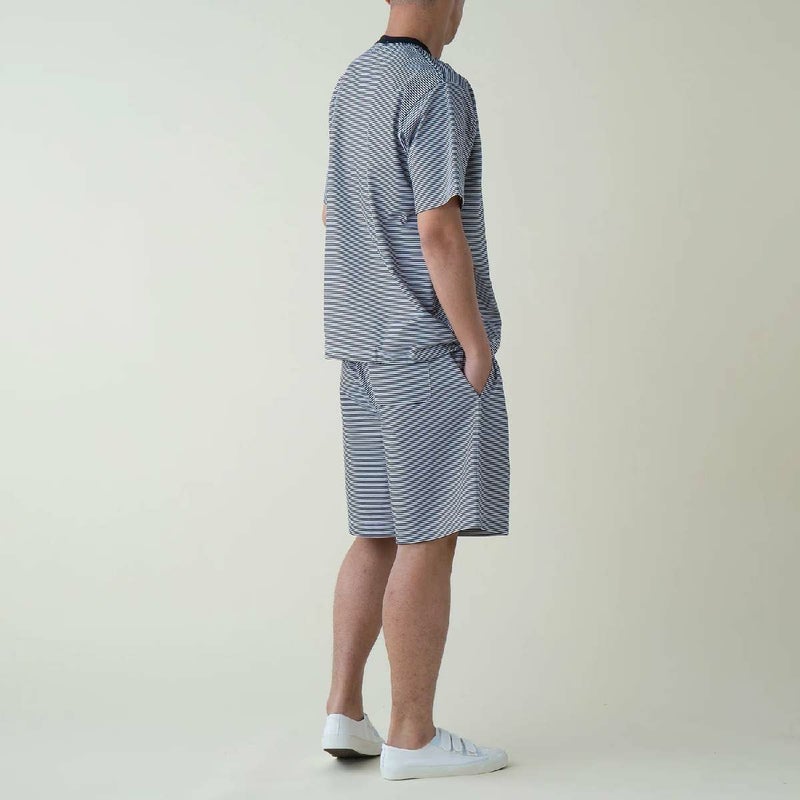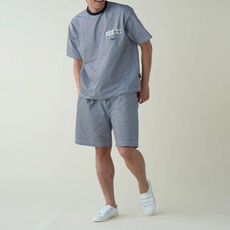 CALCULOとSOLOTEXの二重組織で表側には綿糸を、裏面にはストレッチ性、耐久性の高いポリエステル糸を使用し、着用した際の滑らかな肌触りと吸水速乾性により涼しく感じられるトップスとボトムスのセット。収納バッグ付き。