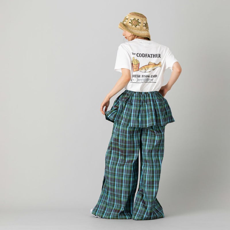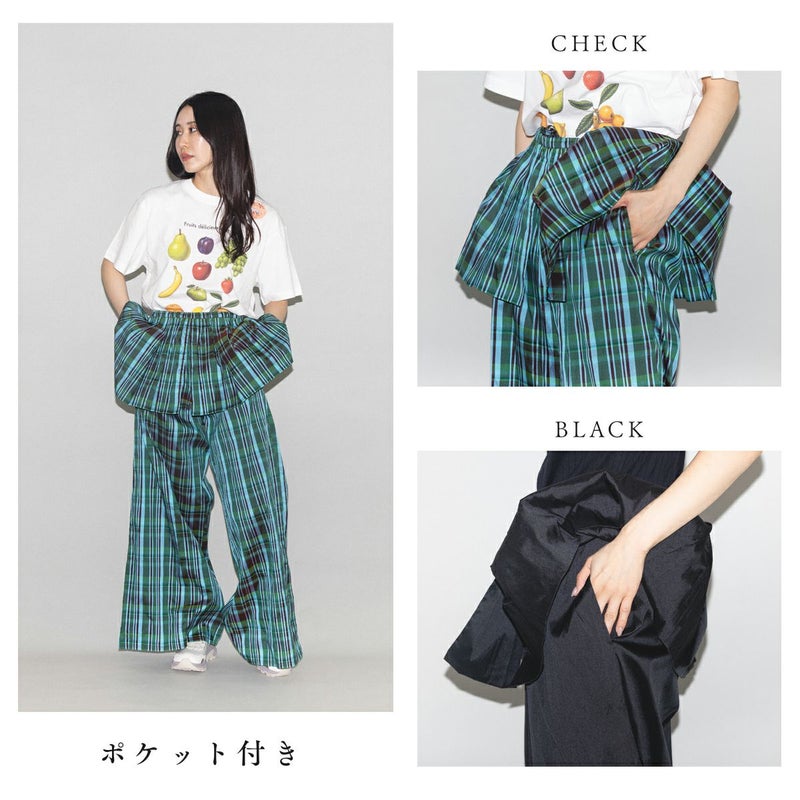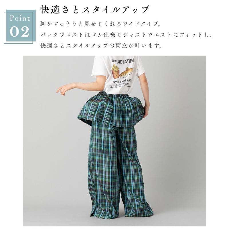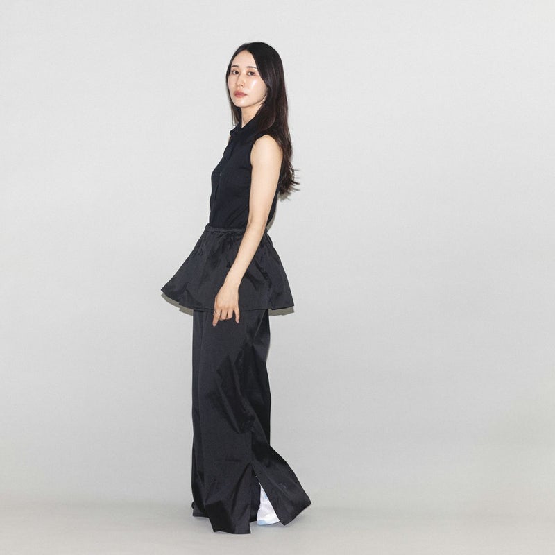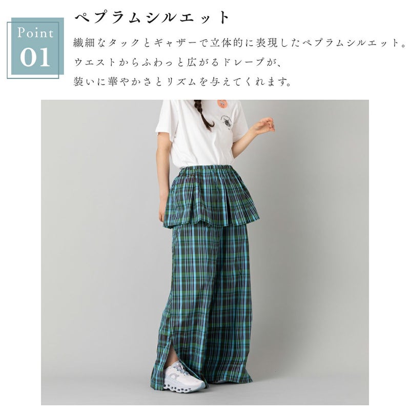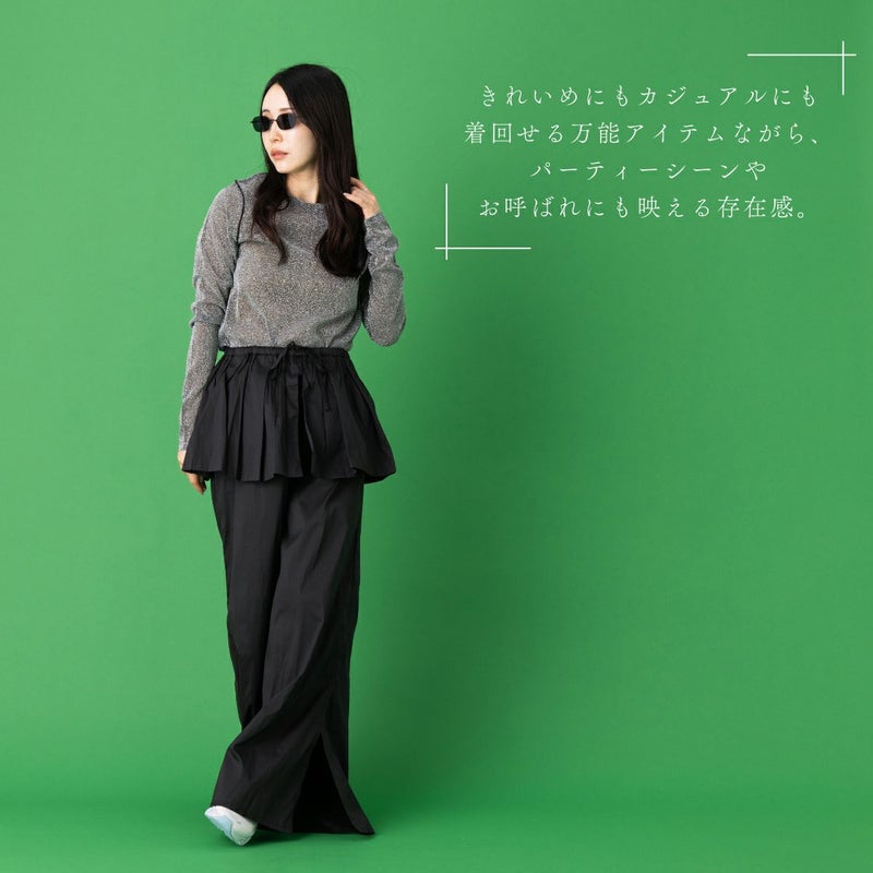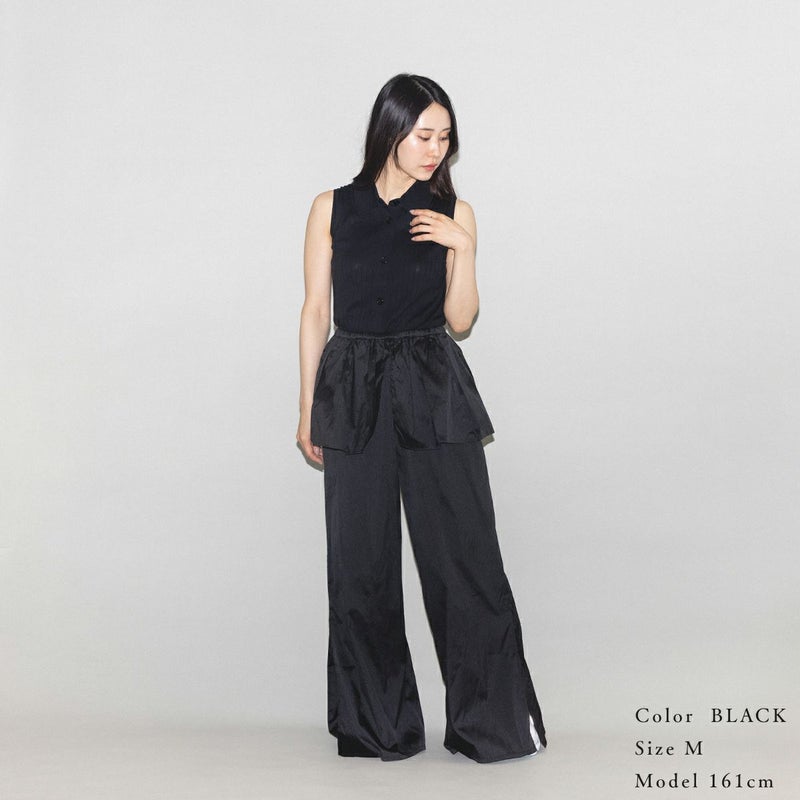 【華やかさを纏う、ペプラムデザインのワイドパンツ】