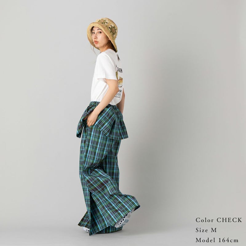 シルエットは脚をすっきりと見せてくれるワイドタイプ。