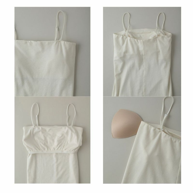 着用時に胸元のラインがストレートになるようにデザインされた、チューブトップ型のキャミソール。