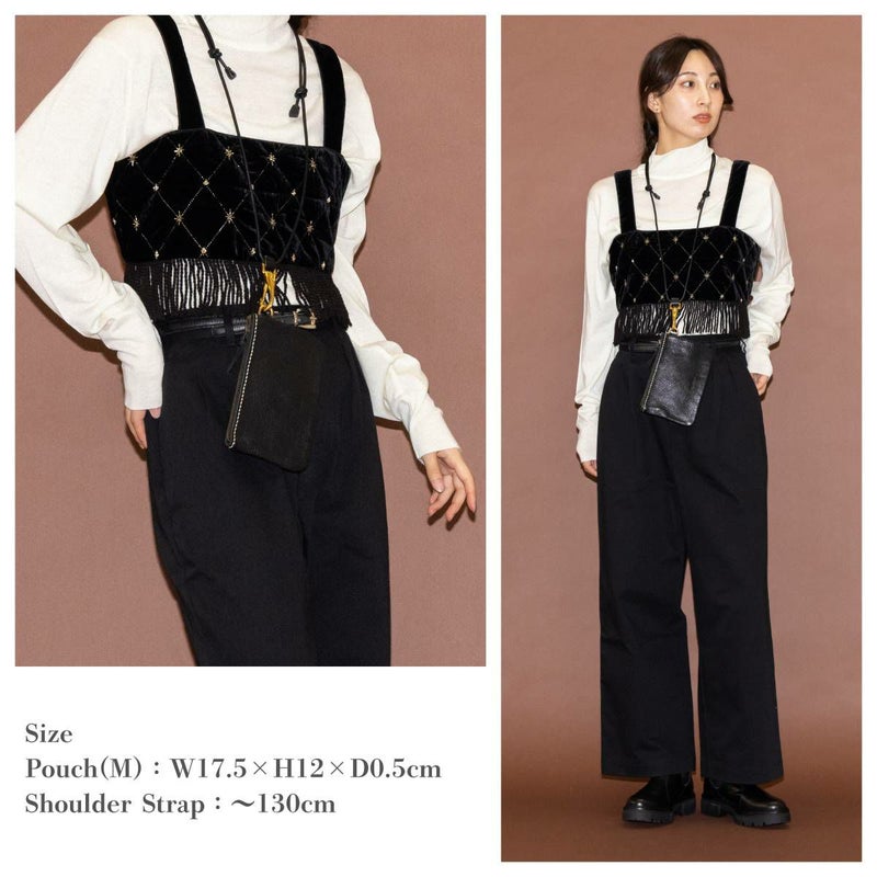アボキカ abokika Flat Goat Pouch Medium & Shoulder Strap フラットゴートポーチ ショルダーストラップフック セット ブラック 革 ポーチ ショルダーバッグ 小物入れ 山羊革 ゴートレザー シボ革 シンプル クラシック きれいめ 上品 通勤 おでかけ ab-25AW30_MSET