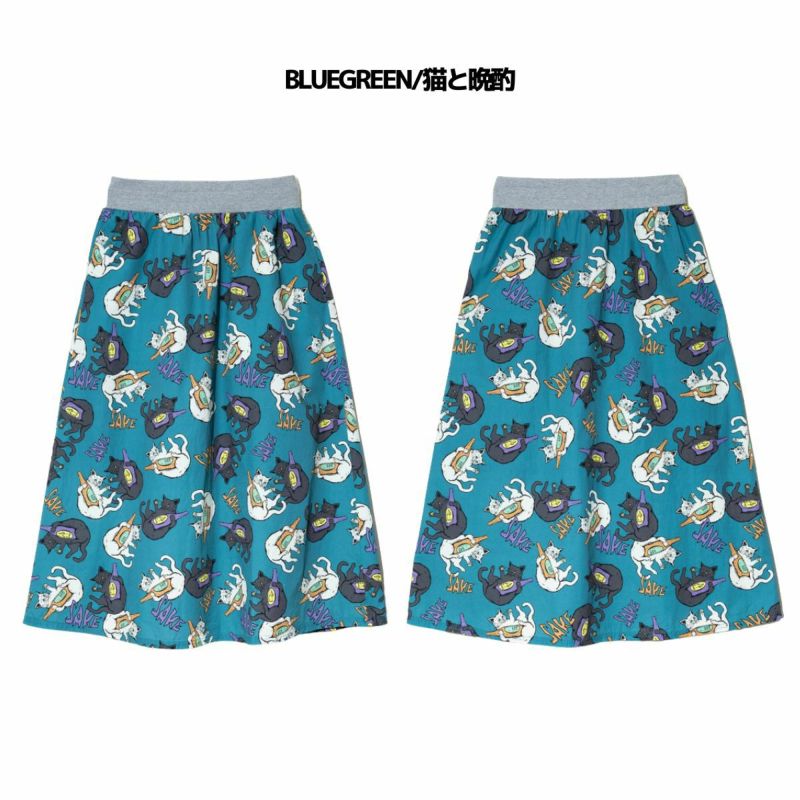 5. ゴースローキャラバン ペイズリー/猫と晩酌 ウエストリブフレアスカート レディース go slow caravan Paisley/Cat and Drink Waist Rib Flare Skirt