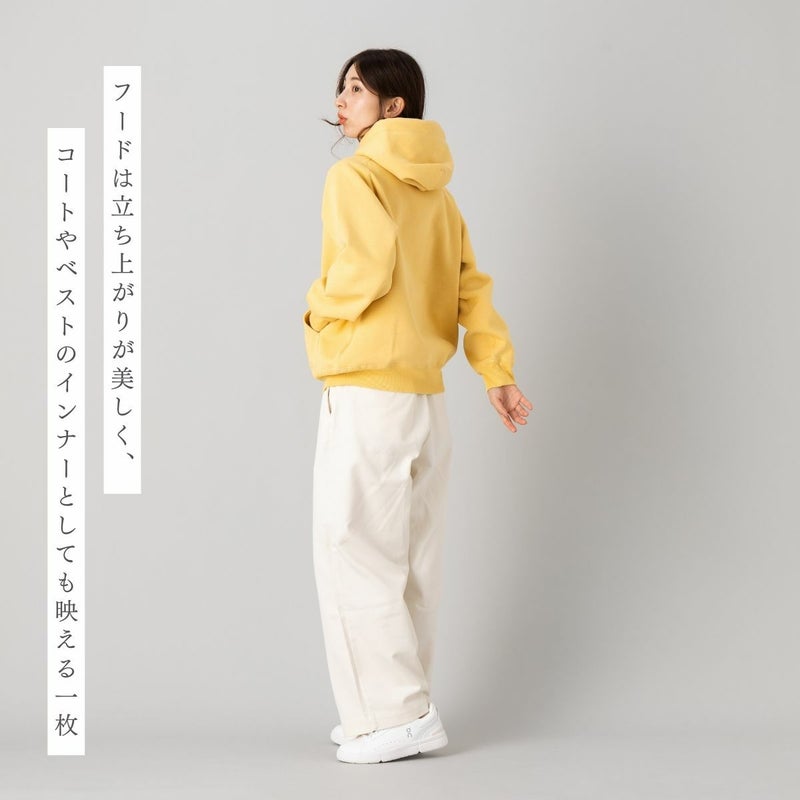 フードの立ち上がりがきれいなので、コートやベストに合わせたスタイリングがおすすめです。