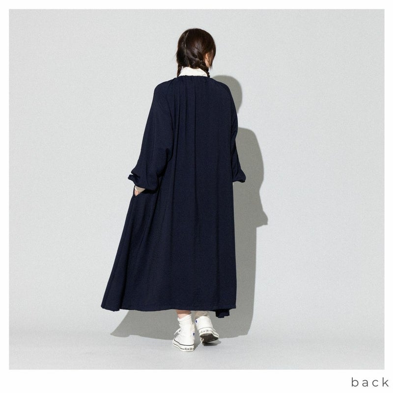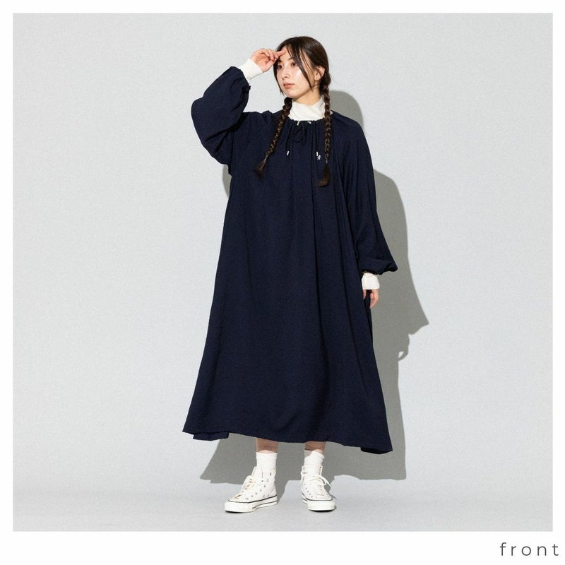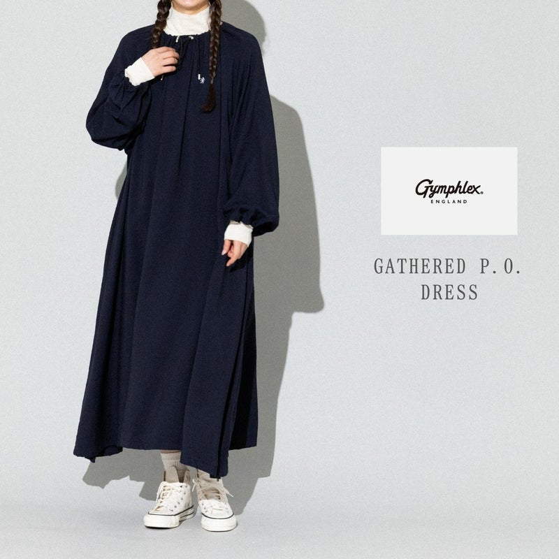 【30%OFF】 ジムフレックス GYMPHLEX ネックギャザー 長袖ワンピース レディース 春 秋 冬 ワンピース ネイビー 紺 ロング丈 おしゃれ かわいい 重ね着 レイヤード GY-G0109 アウトレット セール