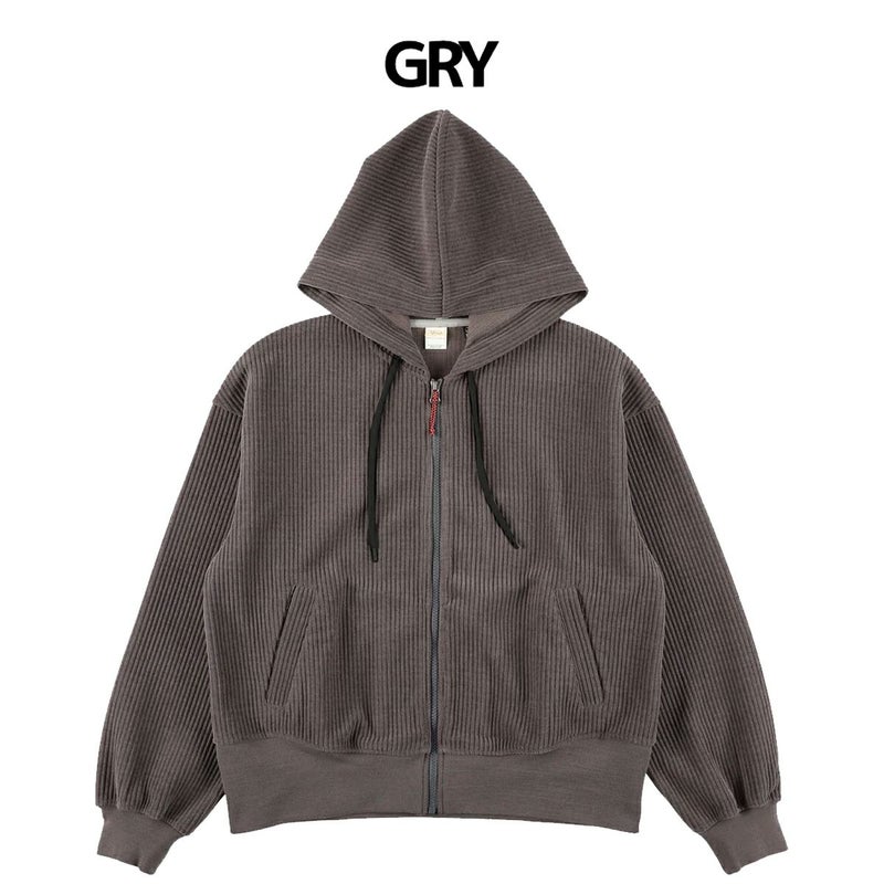 心地よい肌触りのコーデュロイジャージー生地の落ち感が美しいフルジップパーカー。