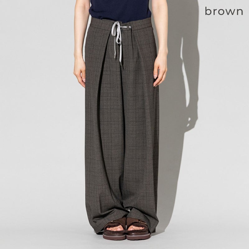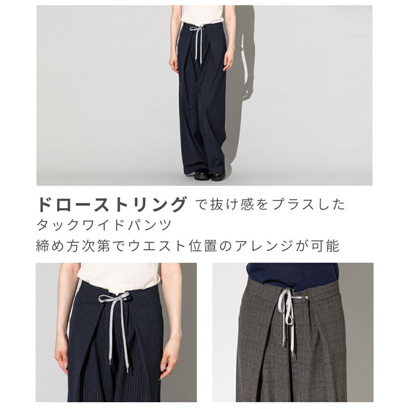ドローストリング(紐ウエスト)で抜け感をプラスしたモダンな一本。