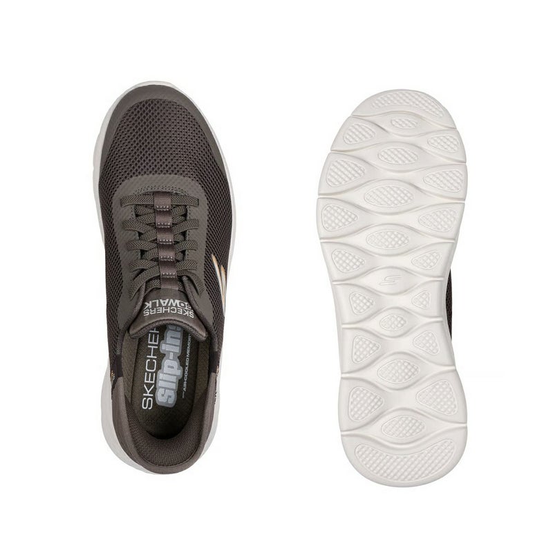 ホットメルト加工の合成素材とエンジニアードメッシュのアッパー、Skechers Air Cooled Memory Foam(スケッチャーズ エアクールドメモリーフォーム)インソール。