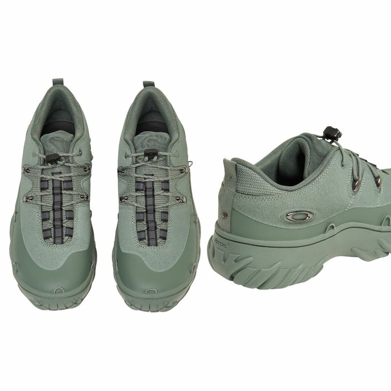 リバースコイルファスナー付きで着脱しやすい防水ゲートルが付属した驚くほどタフで革新的なスニーカー。どんなに過酷な地形やコンディションにも対応する快適なこのスニーカーで、限界に挑戦しよう。かかとにはスナップボタン付き反射仕様の伸縮性ループあり。 ゲードル足首部分にはHT加工が施された立体的で反射仕様のバークロゴ。耐久性に優れたスエードアッパーに、耐摩耗性ポリエステルのアンダーレイ、厚手のVibramRラバーアウトソールを組み合わせたオークリーミリタリーコレクションの特別デザイン。