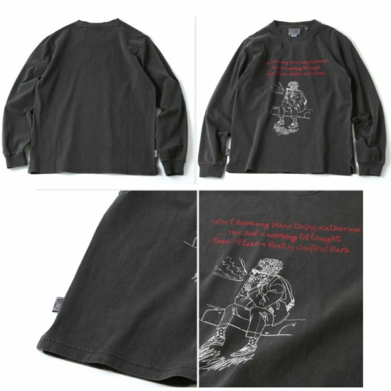 ピグメント染めのボディーに絵と写真を組みあせた絵柄がポイント