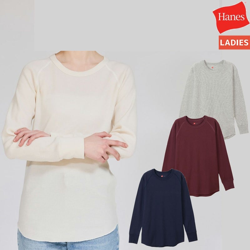 6. ヘインズ ヘインズオリジナル ワッフル クルーネック ロングスリーブ Tシャツ レディース Hanes originals Waffle crewneck longsleeve T-shirt