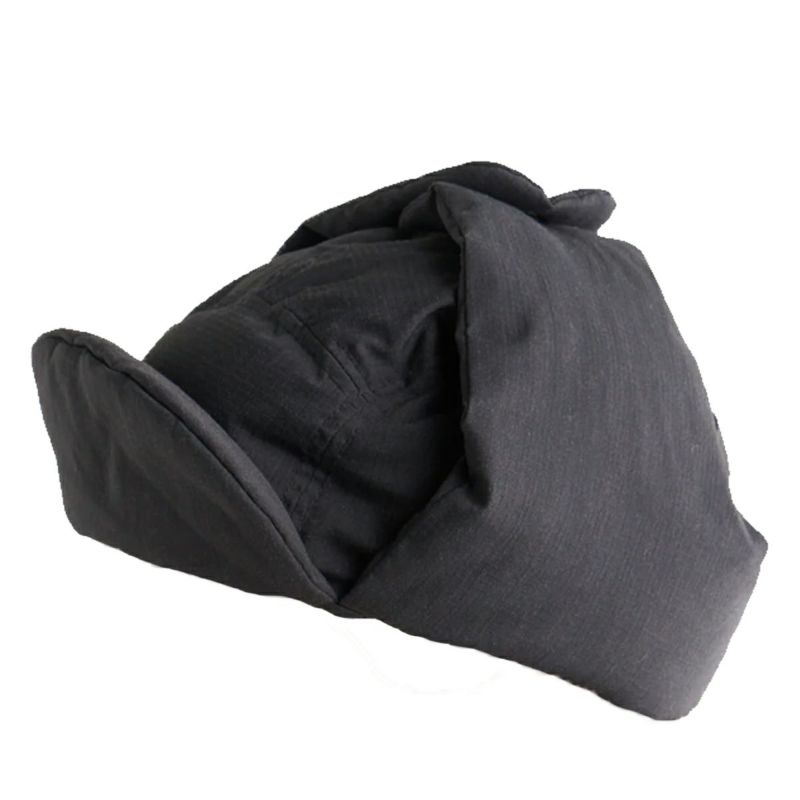固さを軽減した難燃リップストップ生地を使用したイヤーフラップキャップ。
