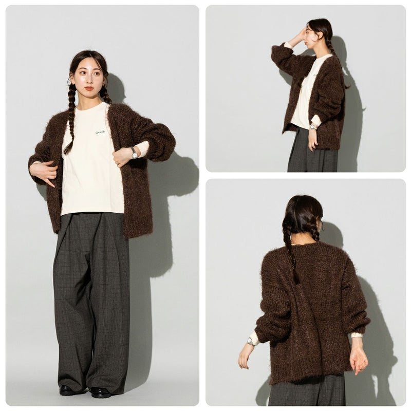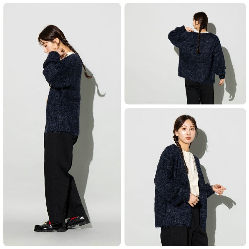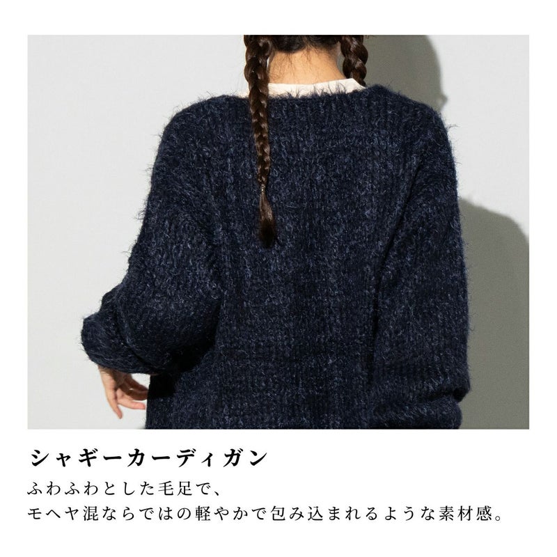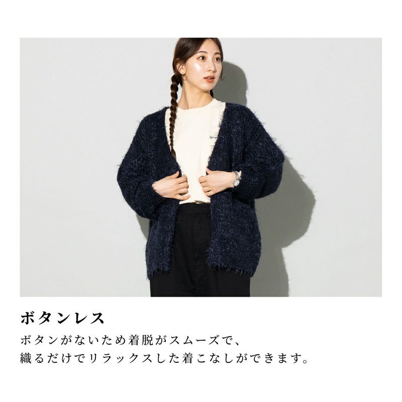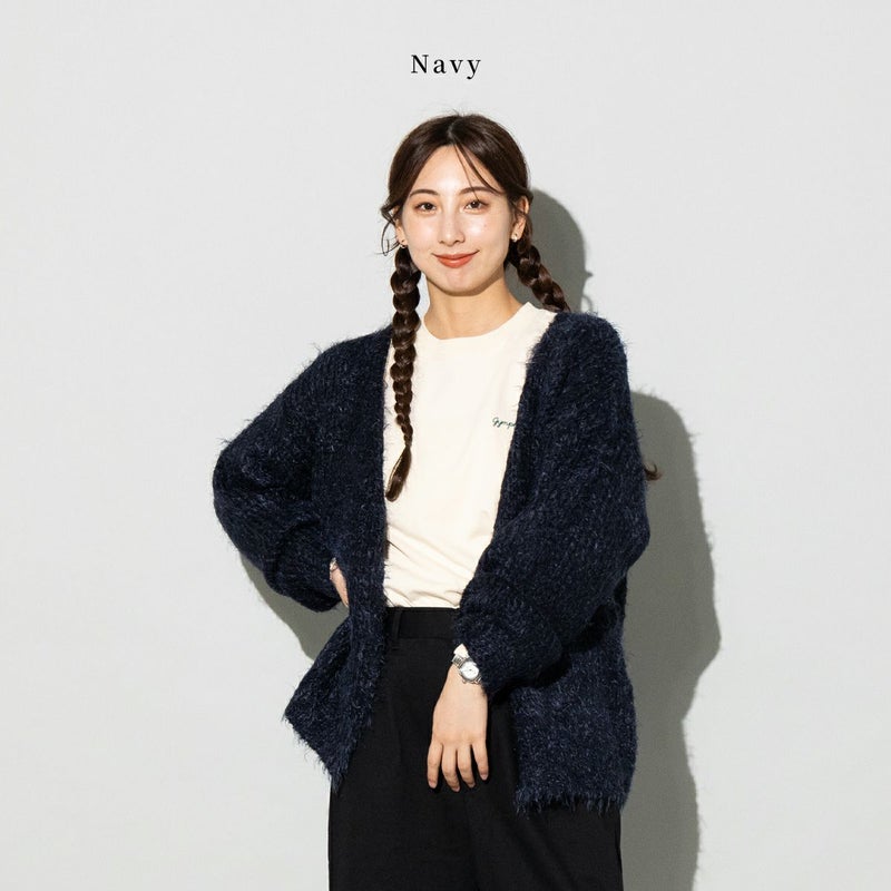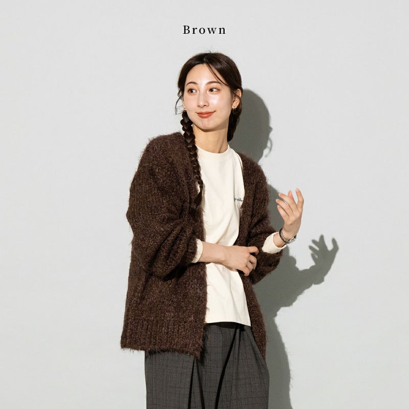 ふわふわとした毛足が特徴のシャギーカーディガン。