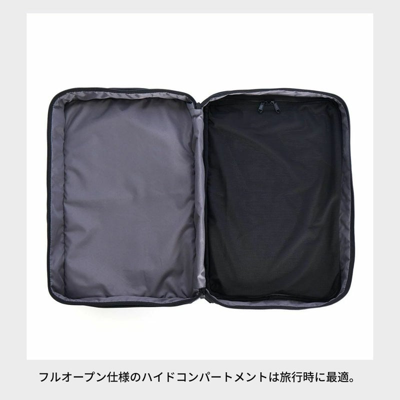 ・フルオープン仕様のハイドコンパートメントは旅行時に最適。荷物を仕分けられるメッシュエリアも完備。