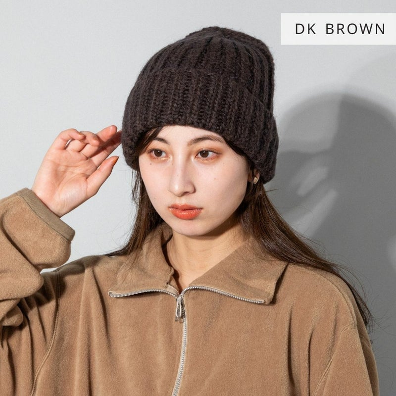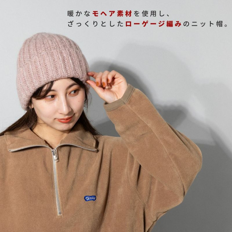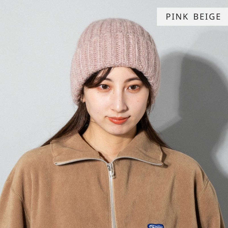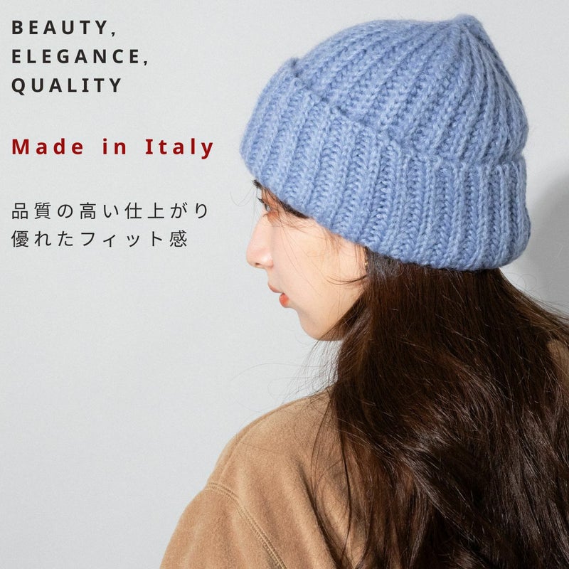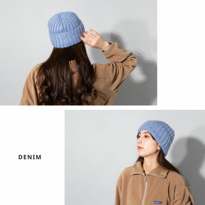 暖かなモヘア混素材を使用した、ローゲージニット帽。