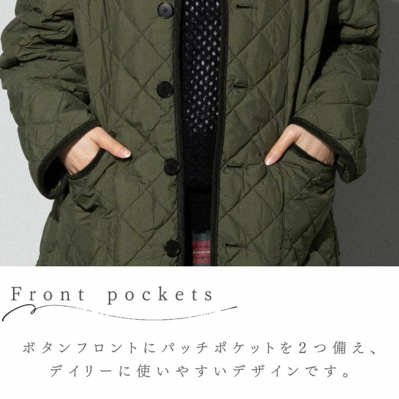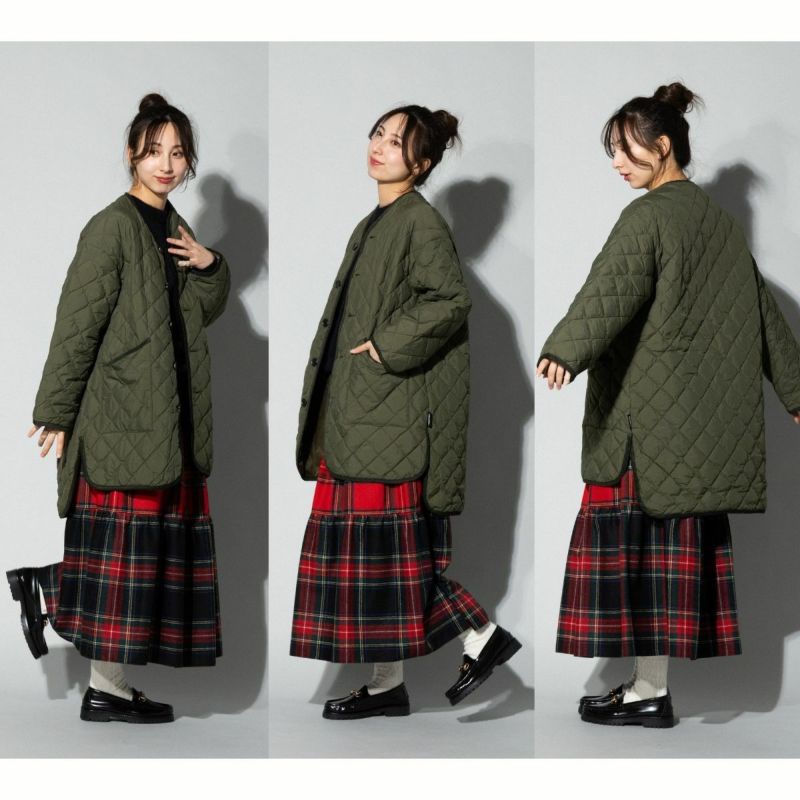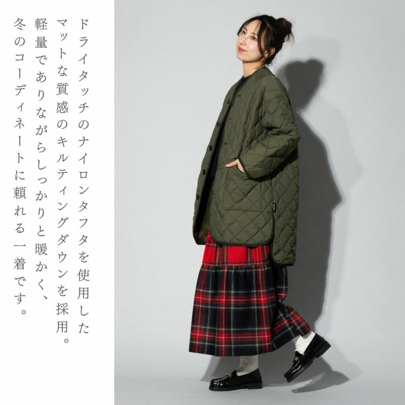 6. ジムフレックス GYMPHLEX キルトダウンカラーレスコート レディース 秋 冬 アウター ブラック 黒 カーキ グリーン カジュアル 防寒 ウェア 保温 軽量 ノーカラー キルティング ミドル丈 GY-A0056