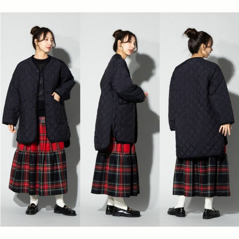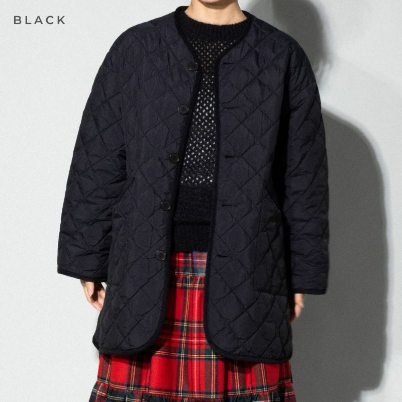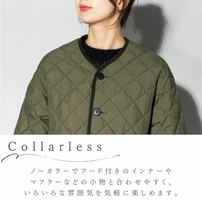 - ノーカラーのキルトダウンコート
