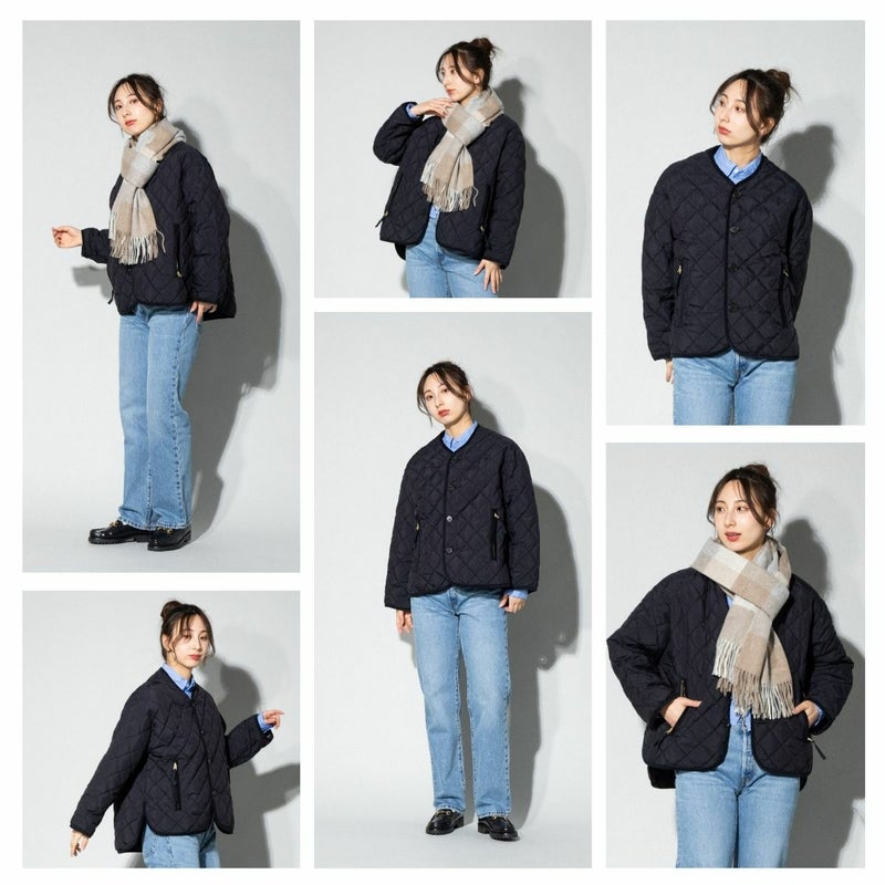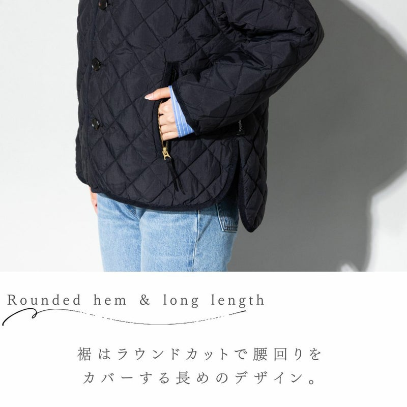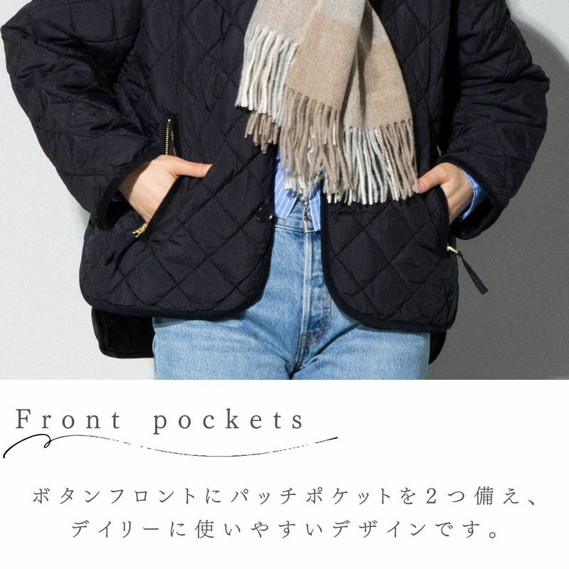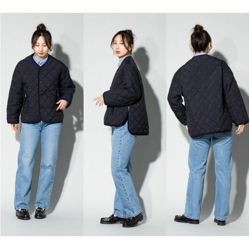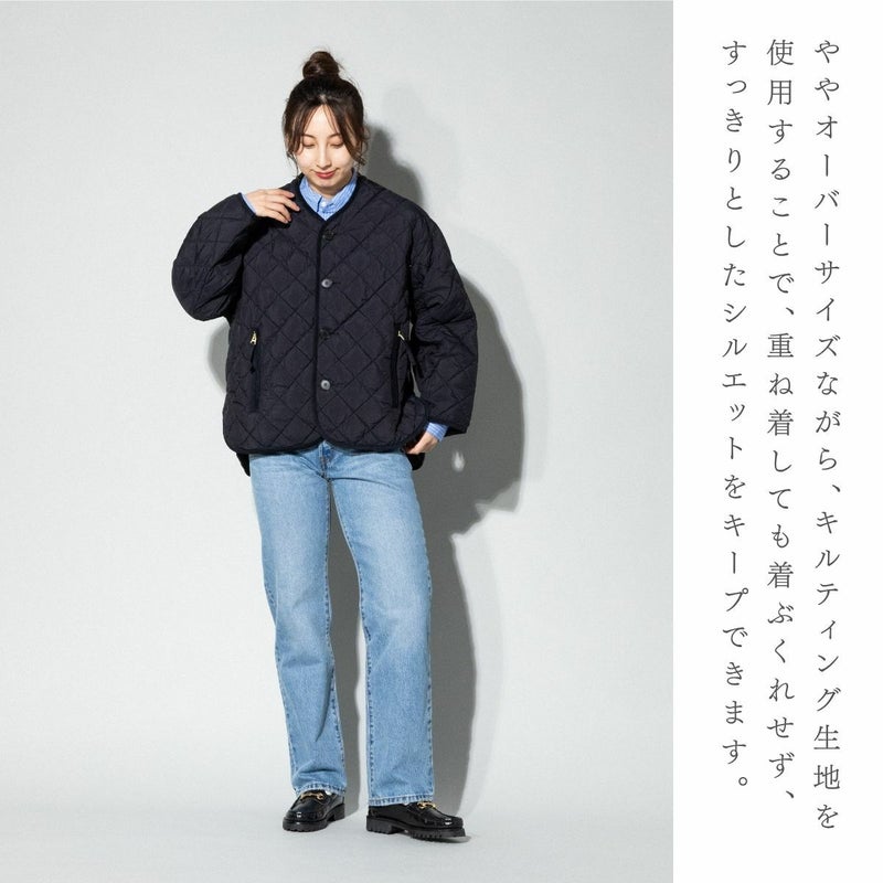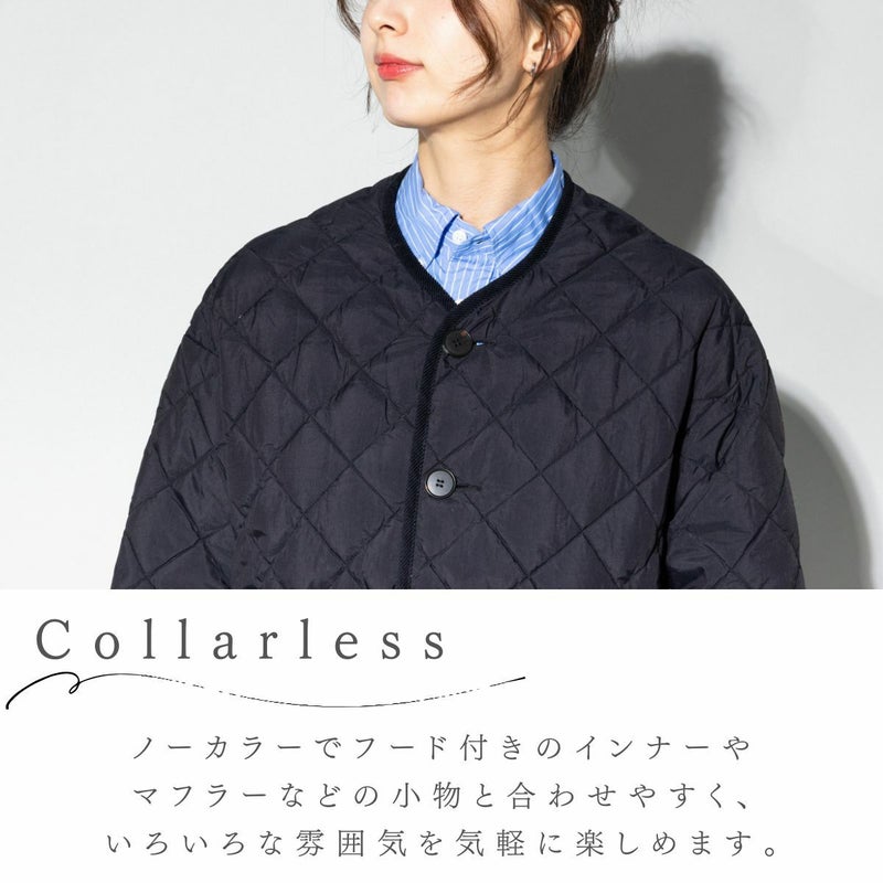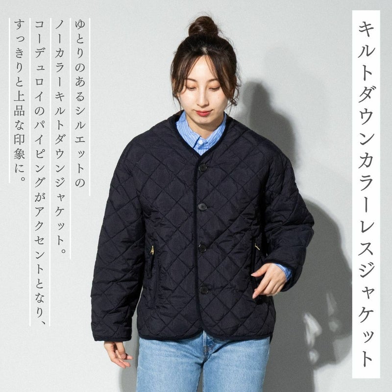 - ノーカラーのキルトダウンジャケット