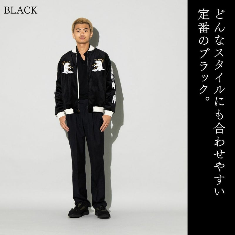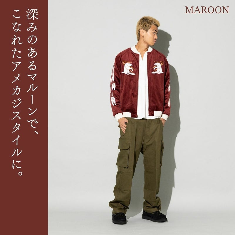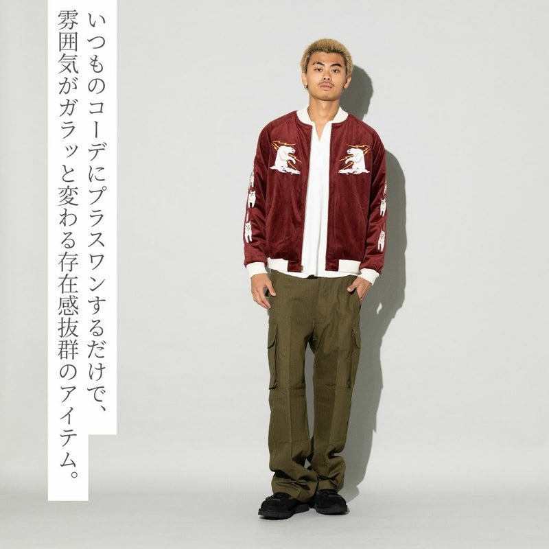 シンプルなコーディネートに羽織るだけで雰囲気を一気に変えてくれる、主役級のスカジャンです。