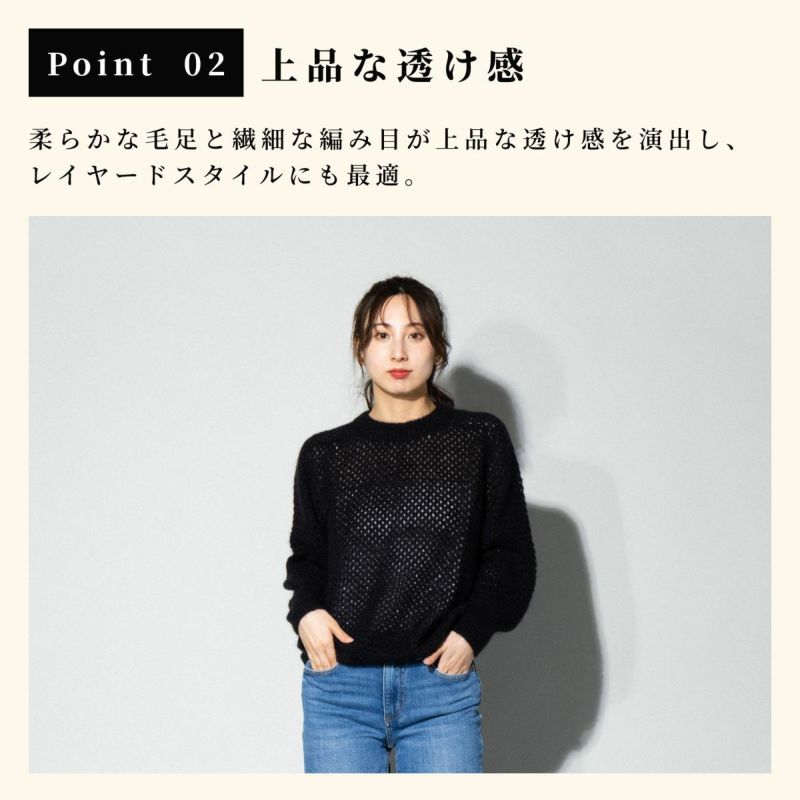 軽やかでふんわりとした着心地が魅力のモヘアニット。