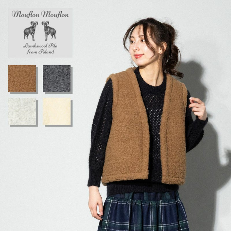【30%OFF】 ムフロン ムフロン MOUFLON MOUFLON ボア Vネック ベスト レディース 秋 冬 ウール 羊毛 無地 厚手 ポケット フロントホック もこもこ 暖かい シンプル かわいい 2008BV アウトレット セール