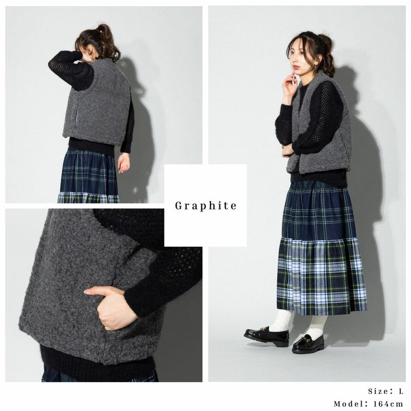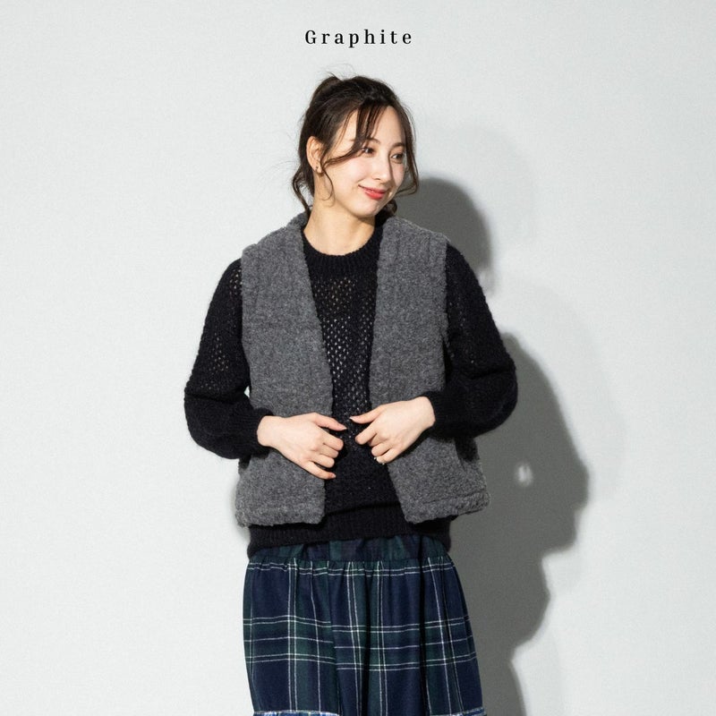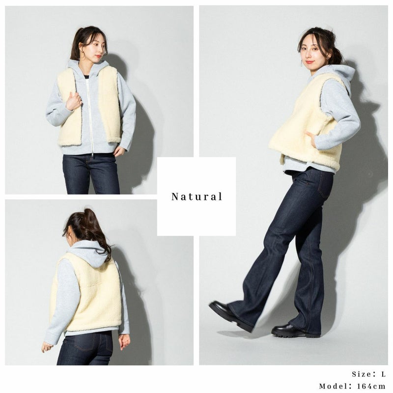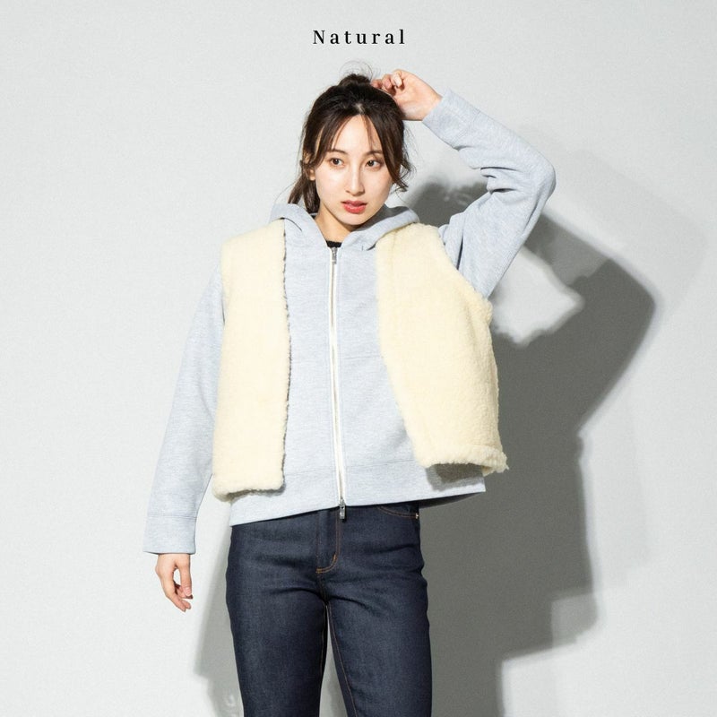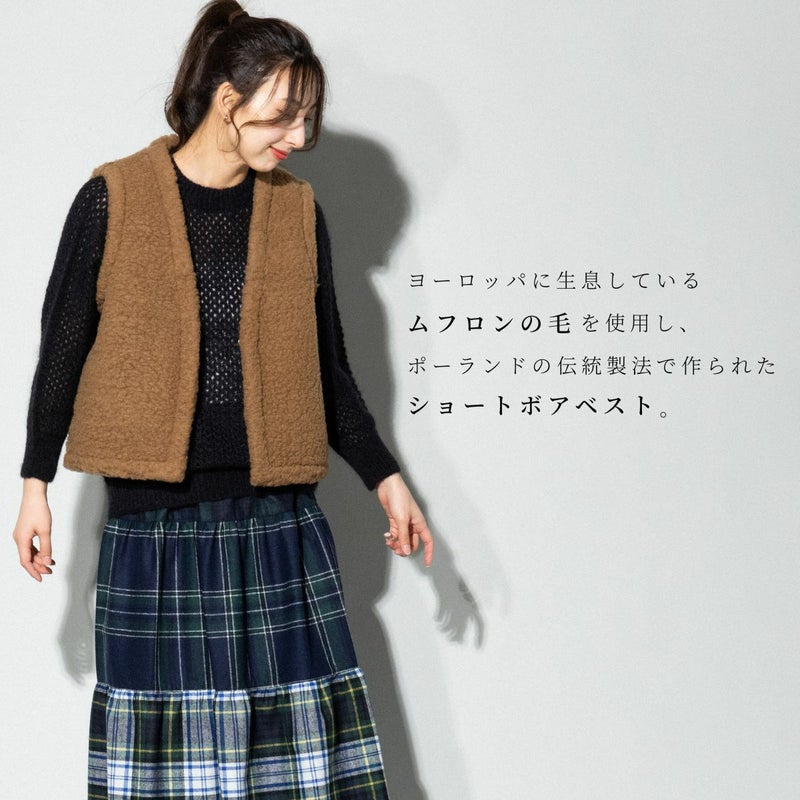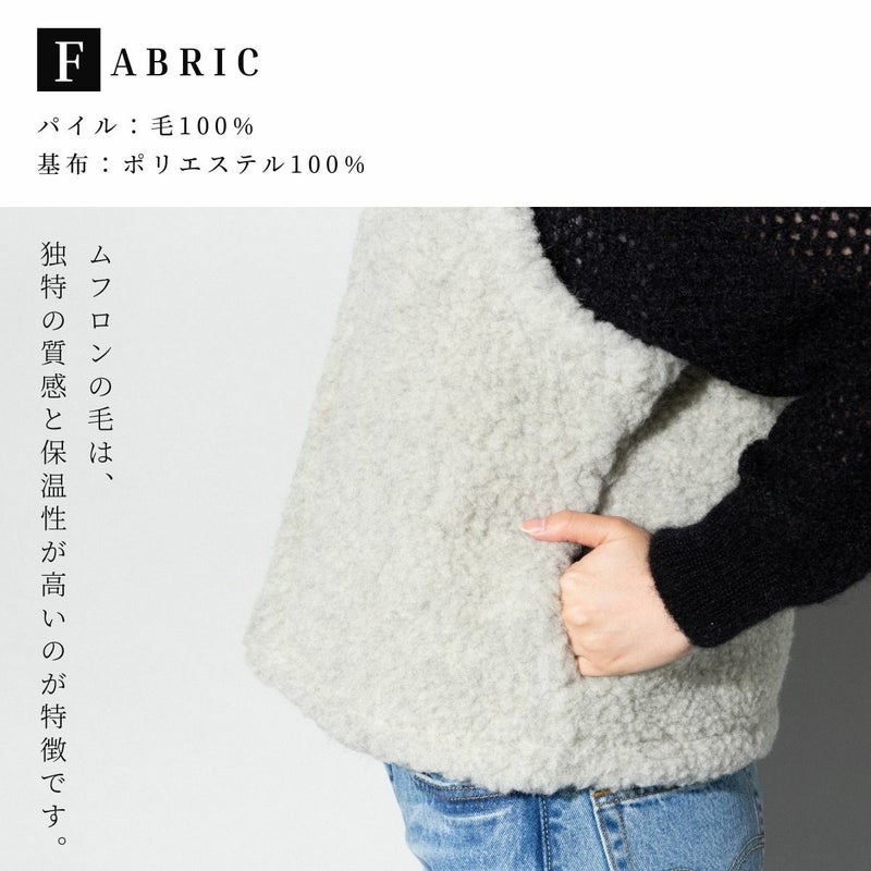 6. ムフロン ムフロン MOUFLON MOUFLON ボア Vネック ベスト レディース 秋 冬 ウール 羊毛 無地 厚手 ポケット フロントホック もこもこ 暖かい シンプル かわいい 2008BV アウトレット セール