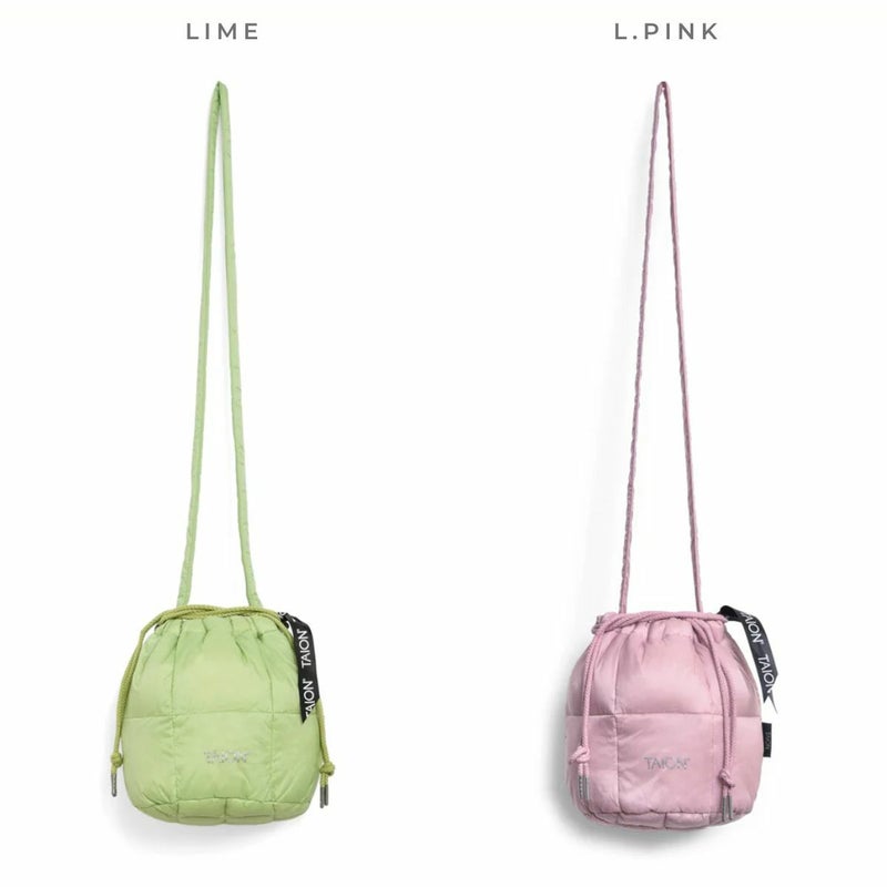 普段使い旅行のサブバッグまで、斜め掛けもできる巾着型ミニダウンバッグ。
