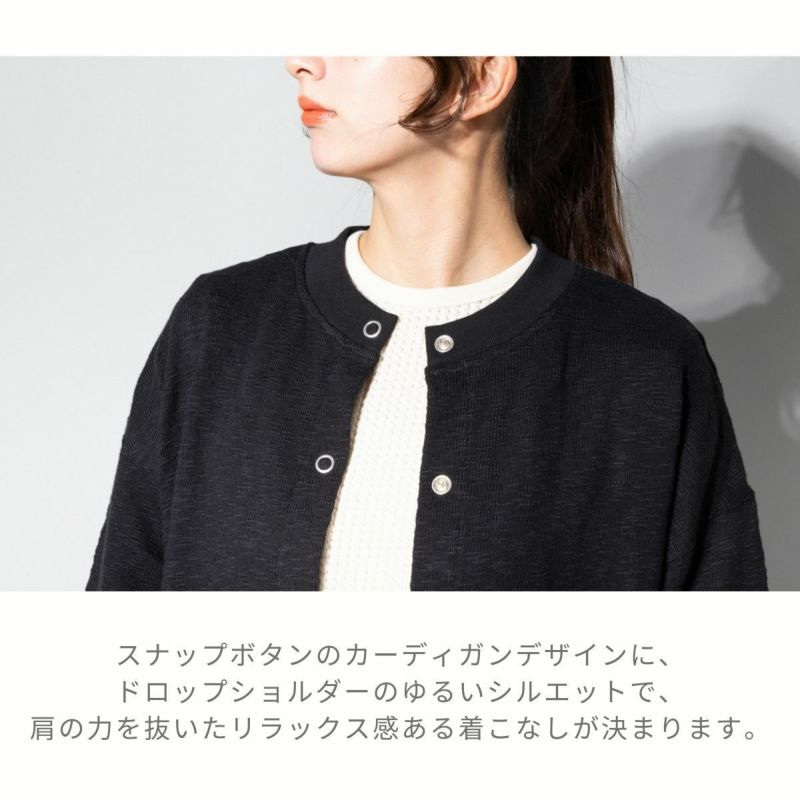 スナップボタンのカーディガンデザインに、便利なサイドポケット付き。