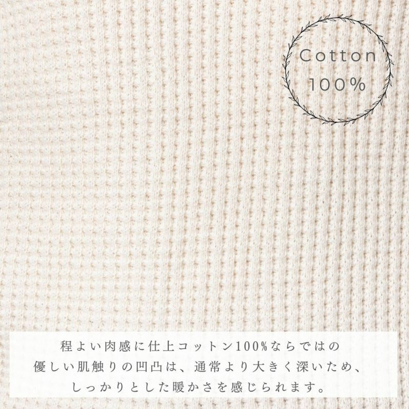 コットン100%ならではの優しい肌触りの凹凸は、通常より大きく深いため、しっかりとした暖かさを感じられます。