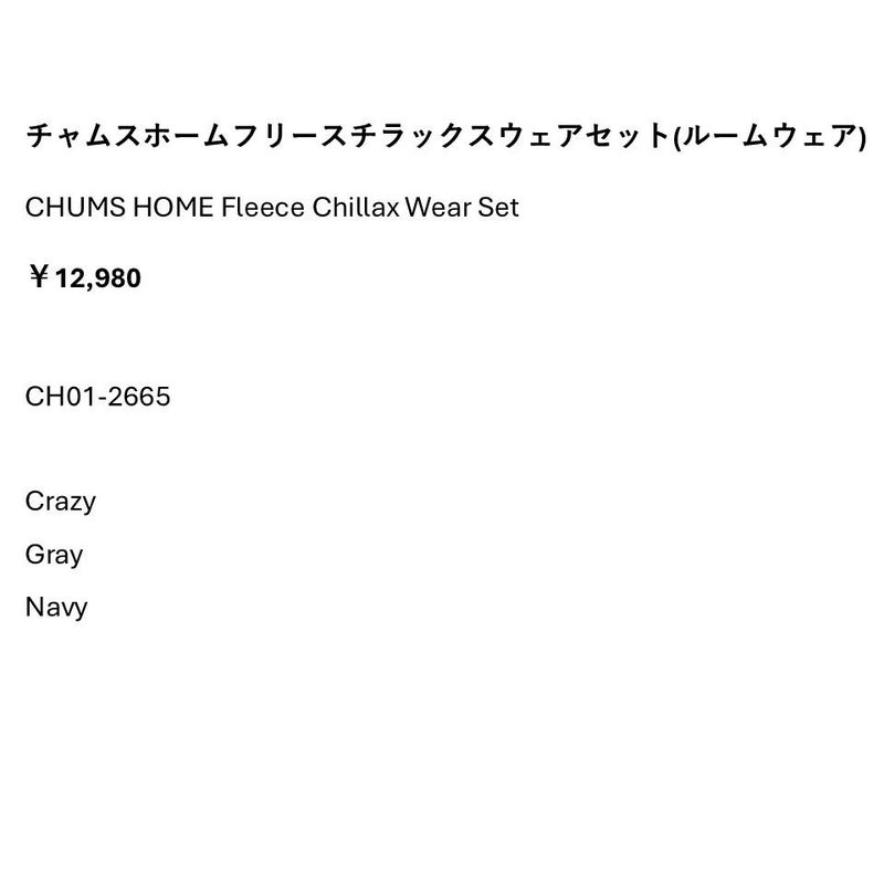 ◆CHUMS HOME PD Fleece Chillax Wear Set(女性用)はこちら◆
