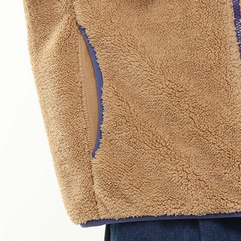 表地には肉厚なボアフリース、裏地にはソフトなマイクロフリースを使用。