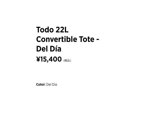 Todo 22L Convertible Toteはトートバッグとバックパックの両方の役割をシームレスに果たし、街中でのアクティブな毎日をサポートします。ノートパソコンをバッグ内側のスリーブポケットに収納し、ボトルやサングラスを外側のメッシュポケットに収納すれば、街中を散策する際にも手軽に持ち物にアクセスできます。 Del Diaコレクションの一つであるTodo 22Lは、高品質なデッドストックを用いて作られたオンリーワンのカラーパターンのアイテムです。