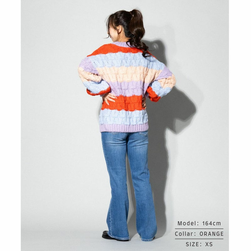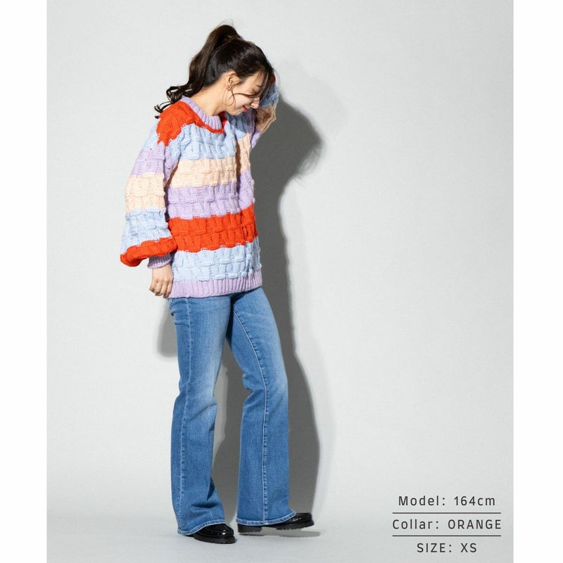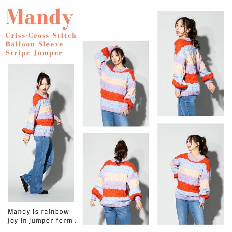 マンディは、虹色の喜びをセーターに詰め込んだニットです。