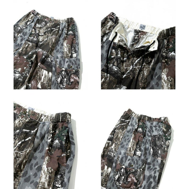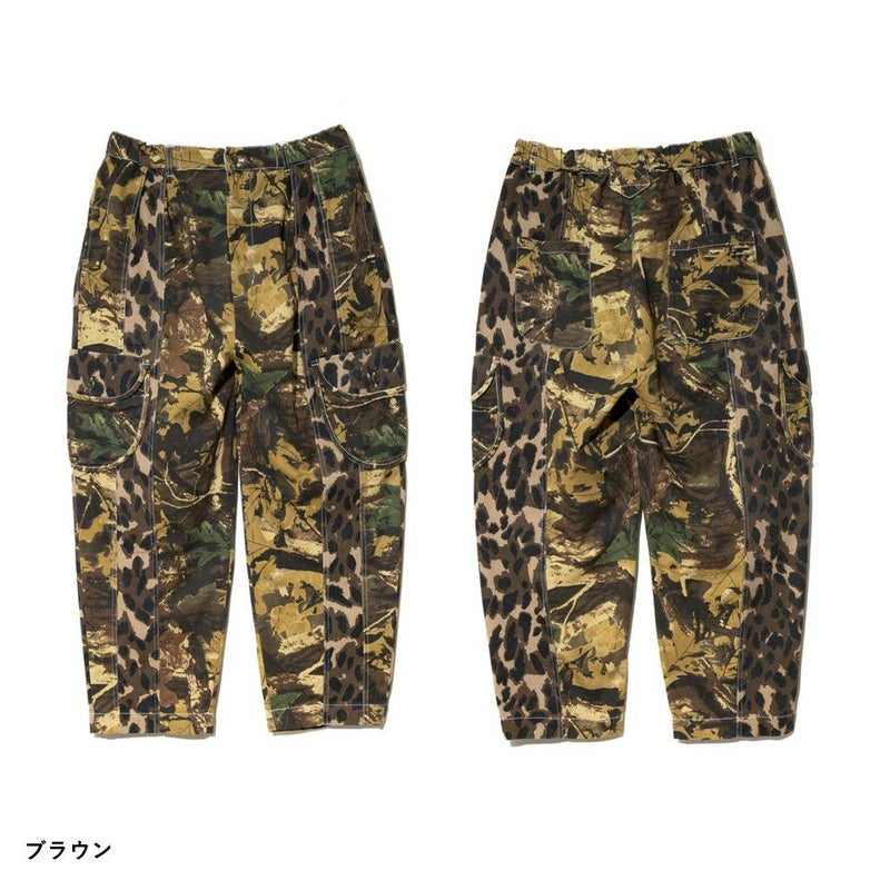 落ち着いたカラーのリアルツリー迷彩と同系色のレオパード柄を組み合わせた、存在感抜群のワイドカーゴパンツ