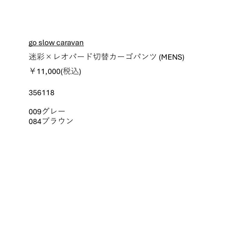【30%OFF】カジュアル パンツ ゴースローキャラバン go slow caravan 迷彩×レオパード切替カーゴパンツ ワイドカーゴ ズボン カジュアル パンツ 356118