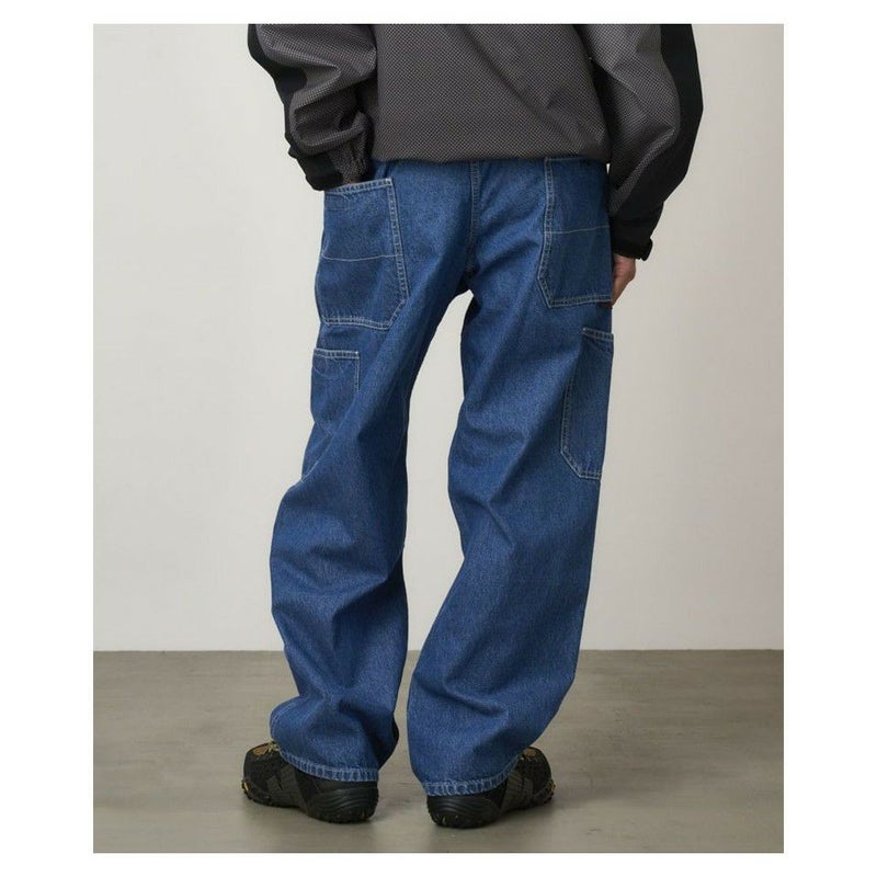 しっかりした質感でハリコシのある、環境配慮エココットンを使用した11オンスデニムを使用した、膝上両脇とお尻にパッチポケットを持つ、ゆとりあるシルエットの GRAMICCI では定番のROCK SLIDE PANT。