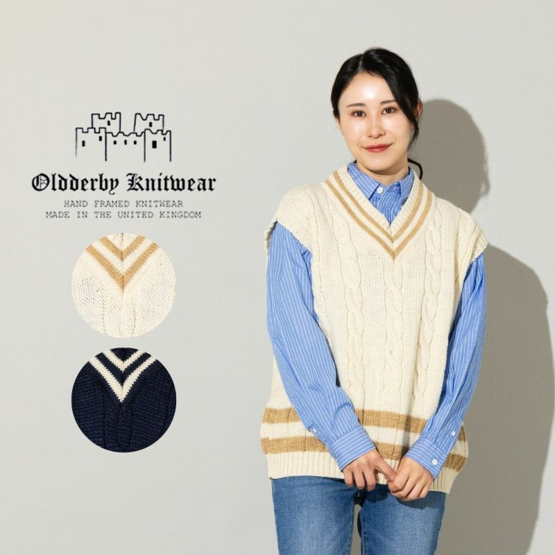 オールドダービー ニットウェア ベスト チルデンニット Vネック セーター レディース OLDDERBY KNITWEAR