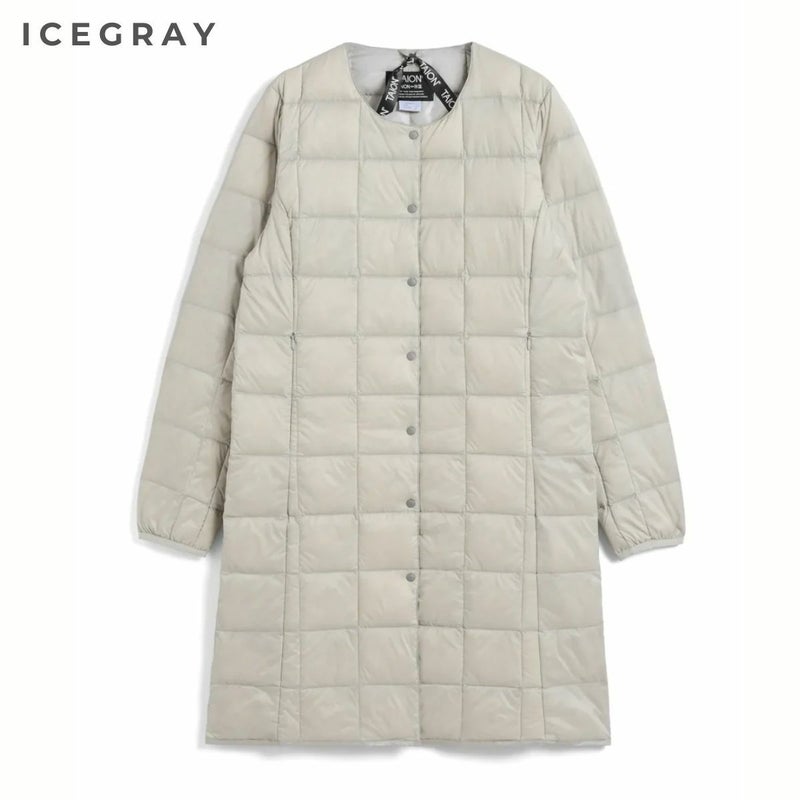【23%OFF】カジュアル ウェア アウター タイオン ベーシック クルーネックボタン ロングダウンジャケット レディース TAION