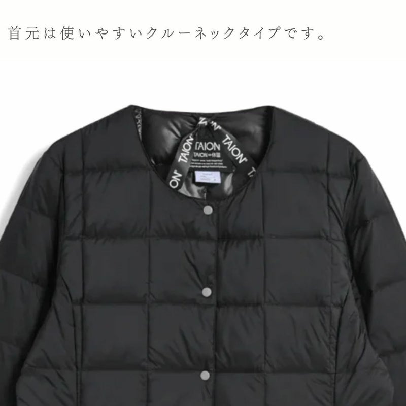 TAIONの定番、ベーシックインナーダウンは、ジャケットやコートの下に着るのはもちろん、Tシャツ・シャツ・ニットなどの上にも気軽に羽織れる、軽くて暖かく着回しやすいシンプルなデザインが特徴です。