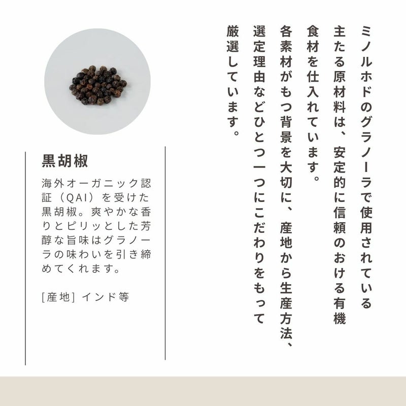 ミノルホドは、自然の恵みと手のぬくもりを感じる、 美味しくて健康的なグラノーラを追求しました。