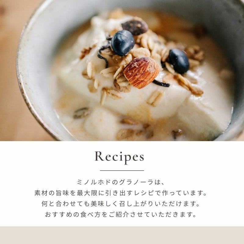 ミノルホドは、自然の恵みと手のぬくもりを感じる、 美味しくて健康的なグラノーラを追求しました。