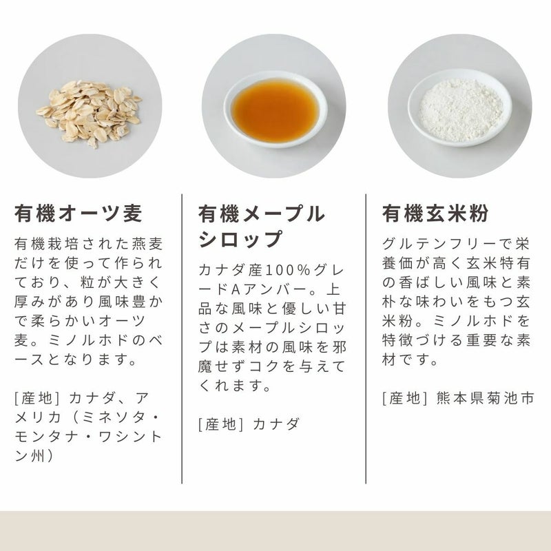 原材料:有機オーツ麦(アメリカ産)、有機メープルシロップ、米油(国内製造)、