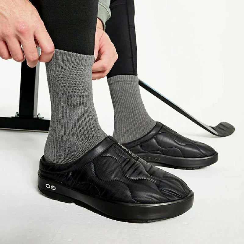寒い季節に活躍するOOcoozie Thermo Muleは、OOFOSの製品に共通するOOfoamテクノロジーとプリマロフトを組み合わせた、ミュールタイプのシューズです。ウィンタースポーツのあとはもちろん、ちょっとしたお出かけの際にもリカバリー効果を提供します。