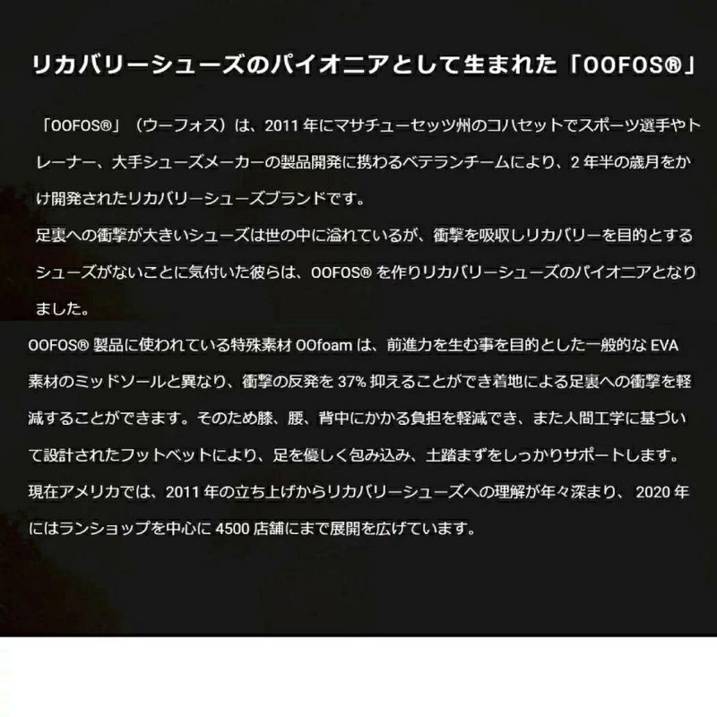 革命的なOOfoamテクノロジーは、一般的な EVA 素材のミッドソールと異なり、37%も衝撃の反発を抑え、足と関節への負担を軽減します。