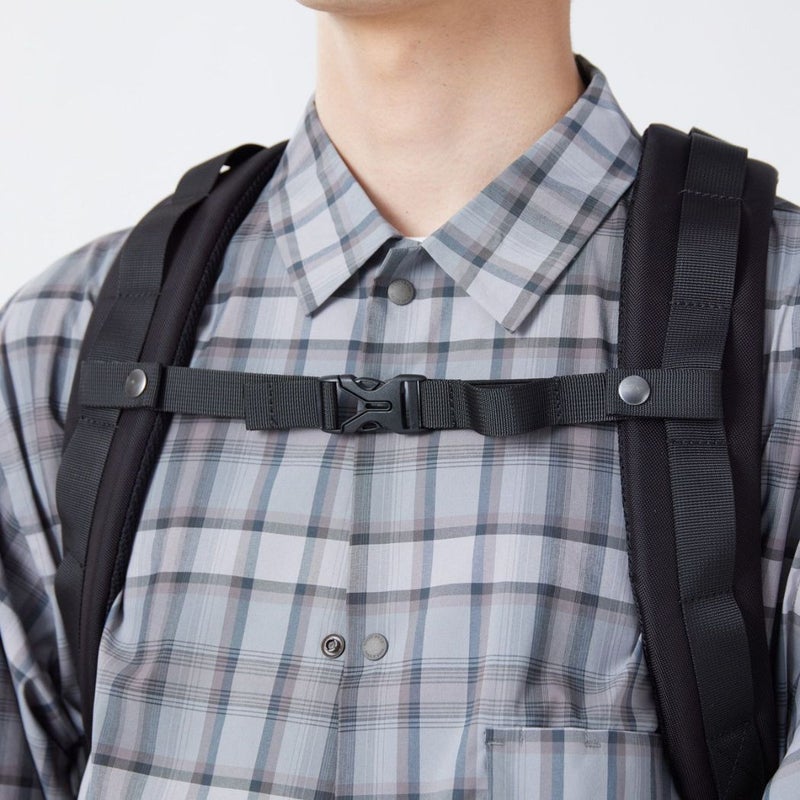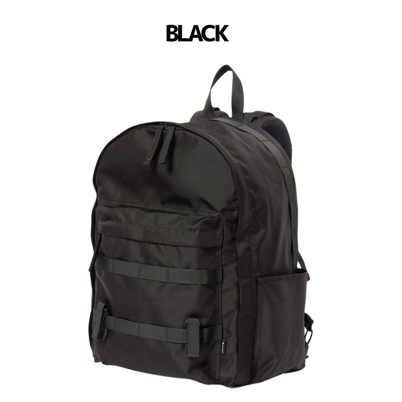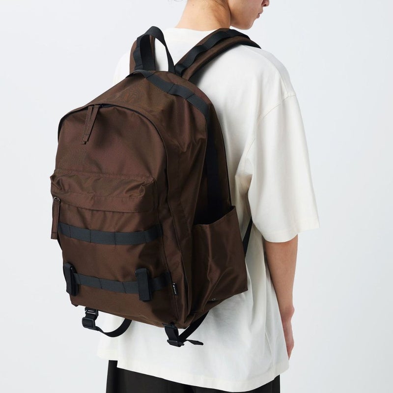 リサイクル素材を使用したバックパック。日常使いからアウトドアシーンまで扱いやすいサイズ感に仕上げています。