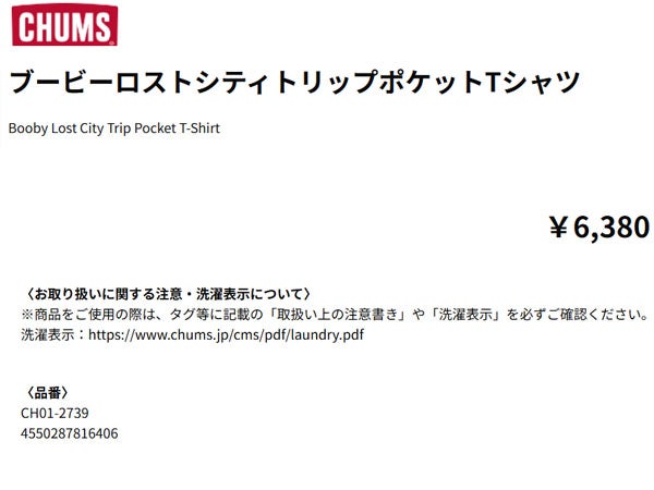 カジュアル 半袖 シャツ チャムス ブービー ロストシティ トリップ ポケットTシャツ メンズ CHUMS Booby Lost City Trip Pocket T-Shirt CH01-2739