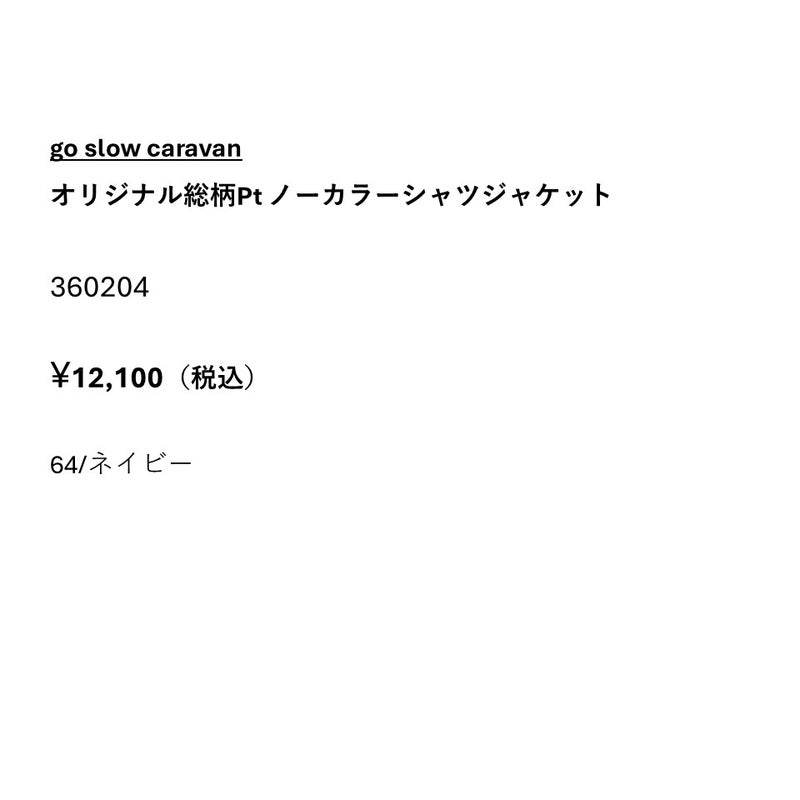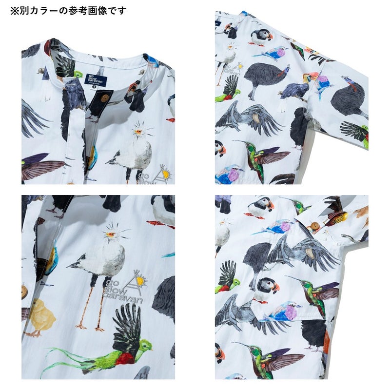go slow caravanオリジナルの総柄プリントが目を引くノーカラーシャツジャケット